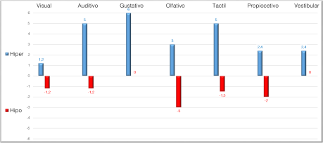 De forma ideal, la gráfica sería complementada con un informe del especialista, que recogiera el análisis de los resultados, destacando cuál es la tendencia principal, evitar o buscar determinados estímulos, así como la recomendación de actividades acordes con la información proveniente del cuestionario.